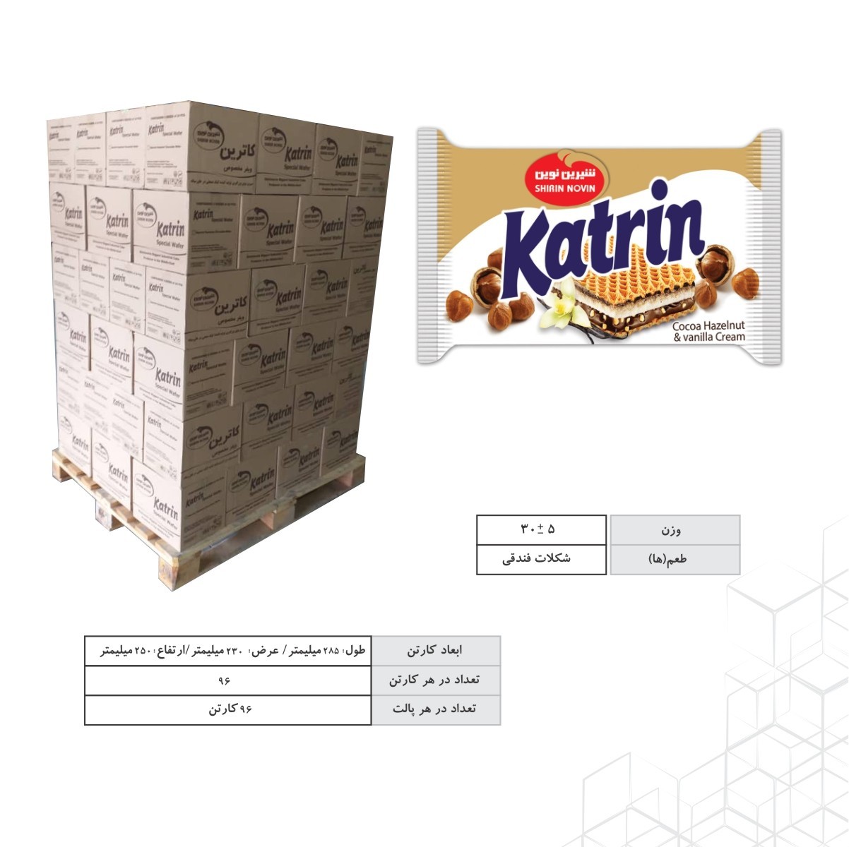 ویفر کاترین کاکائو فندق و کرم وانیل